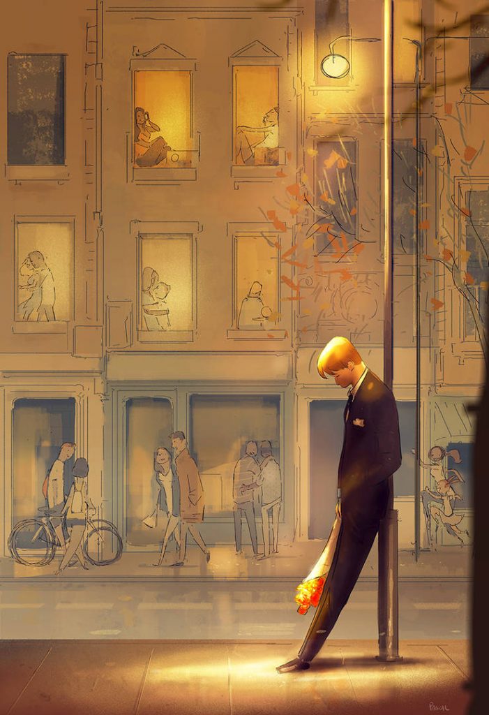 Sempre representando os olhares e acontecimentos diversos da vida humana nas cidades, Pascal traz no livro diversos casais, famílias (incluindo a do próprio artista), representações da solidão, críticas à falta de empatia do coletivo e outras cenas emotivas.
